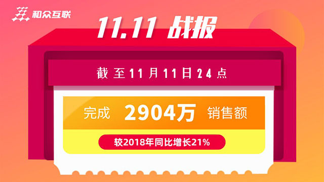 2019年双十一,和众互联电商项目共完成2904万销售额,提前并超额完成双十一总目标,较2018年同比增长21%,并创历史新高。喜临门自营项目提前完成冲刺目标,喜临门POP项目和曲美项目提前完成基础目标,喜临门获得京东双十一床垫类目销售TOP1。